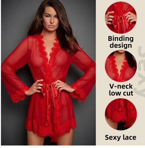 Сексуальний дизайн: халат має сексуальний дизайн із мереживом і тонкою прозорою марлею, що робить його ідеальним для нічного виходу чи особливого випадку.