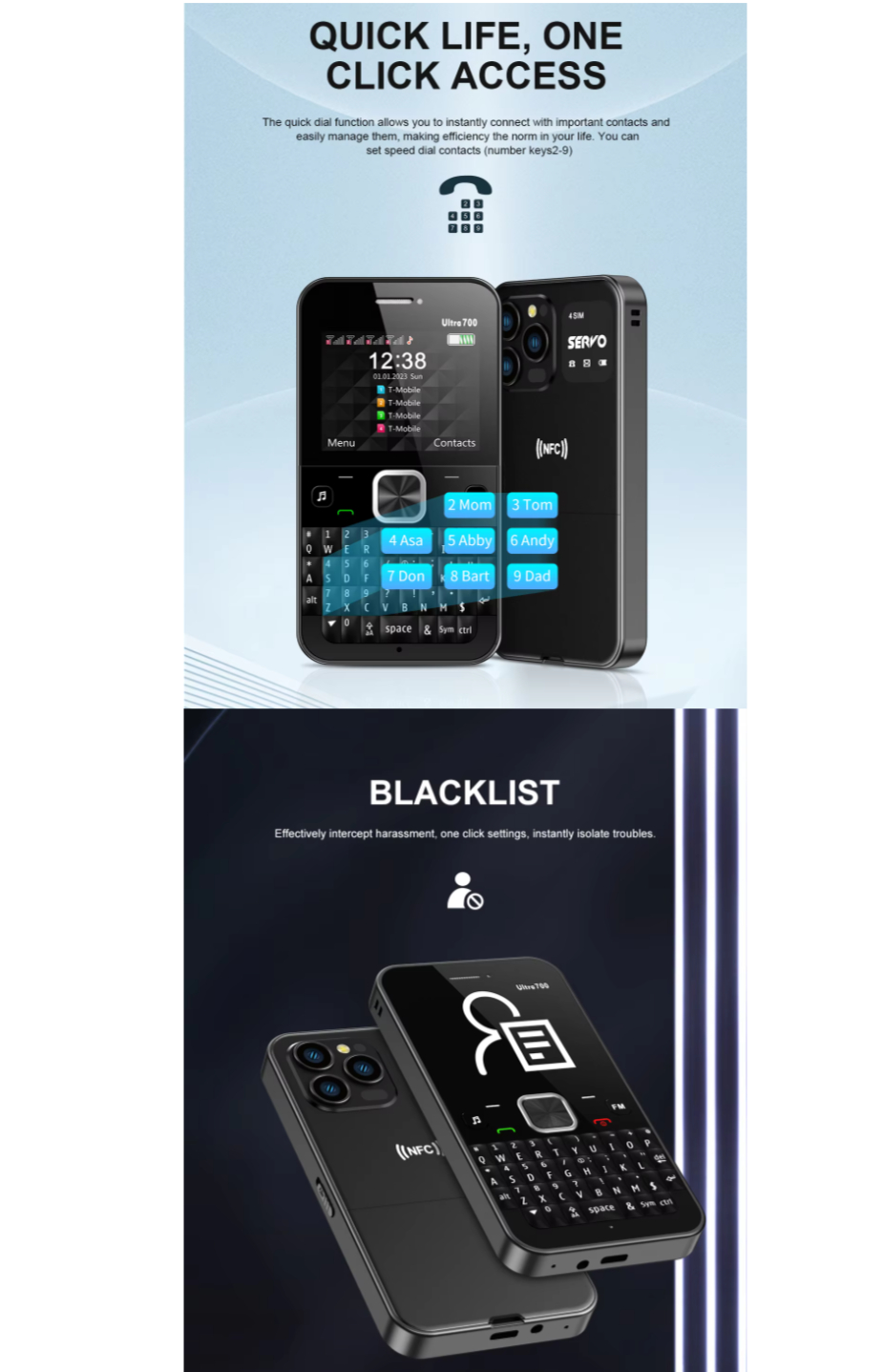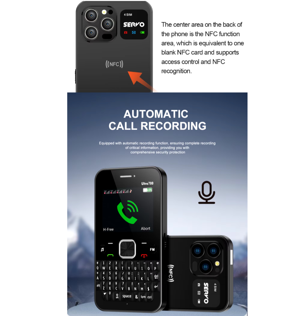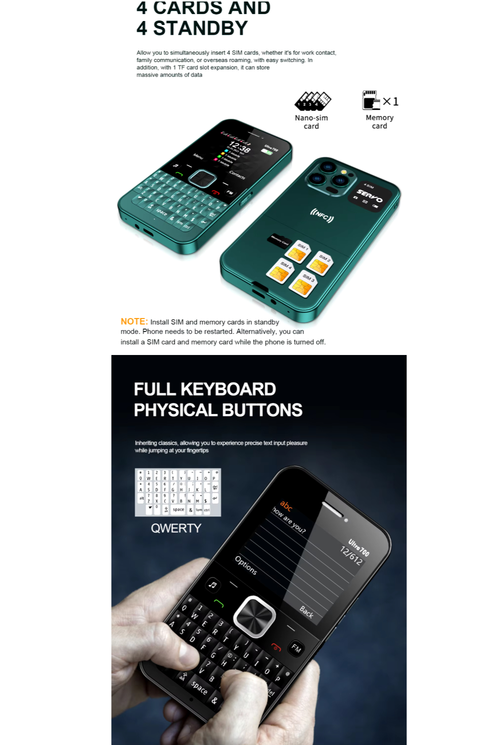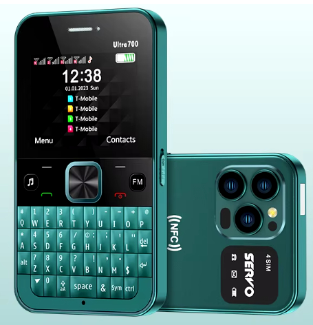SERVO Ultra700 мобільний телефон, 4 SIM, Повна клавіатура, NFC, швидкий виклик, ліхтарик