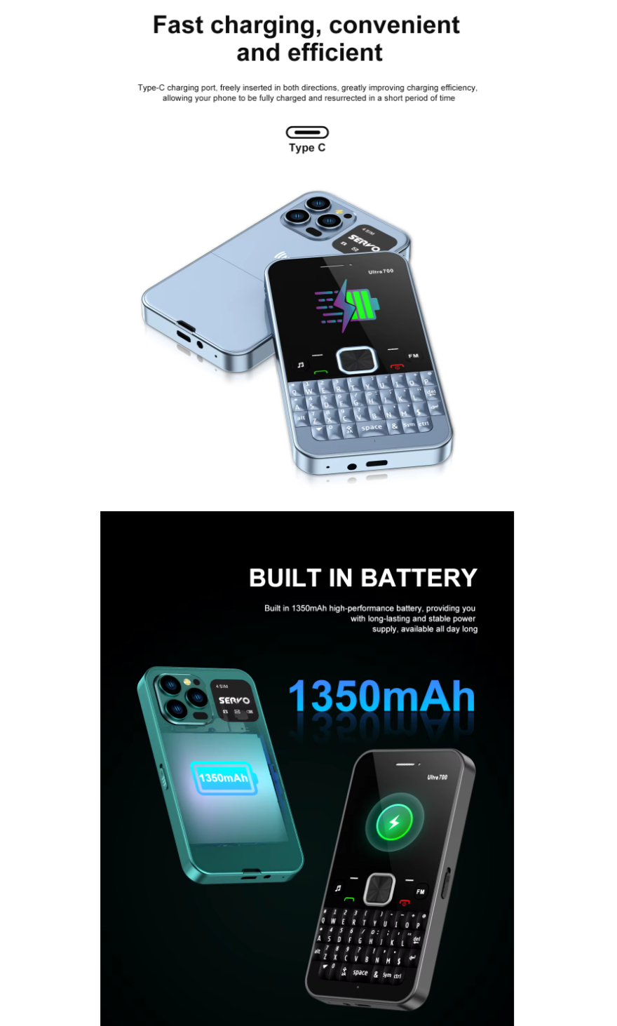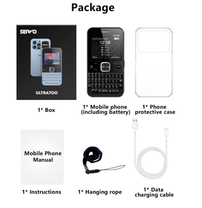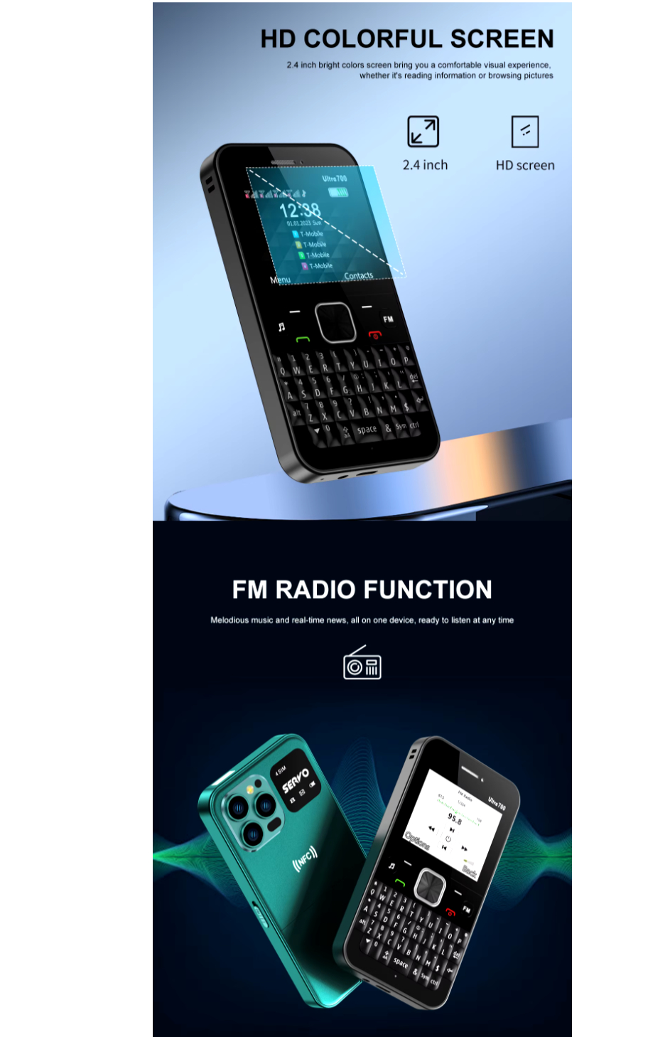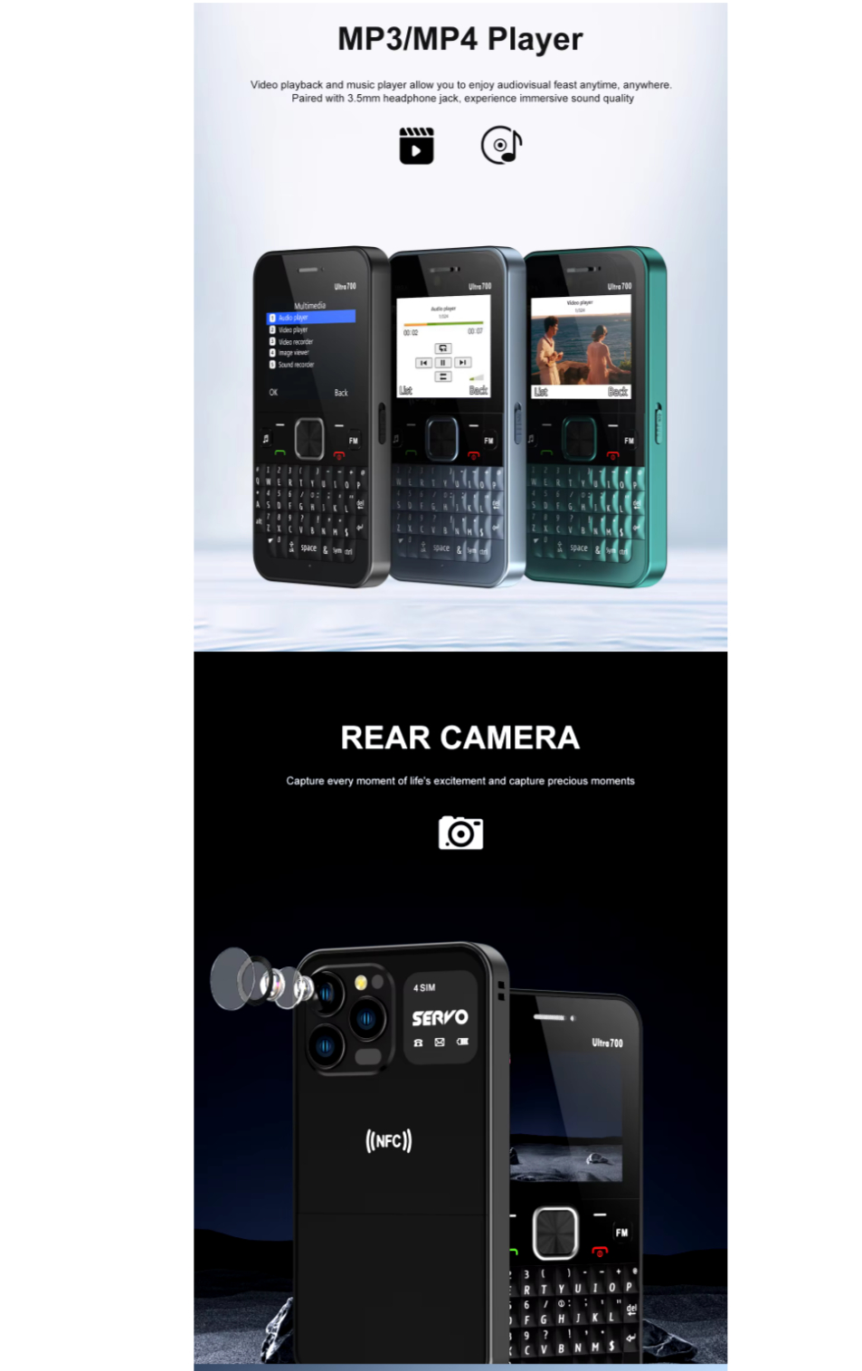 SERVO Ultra700 мобільний телефон, 4 SIM, Повна клавіатура, NFC, швидкий виклик, ліхтарик