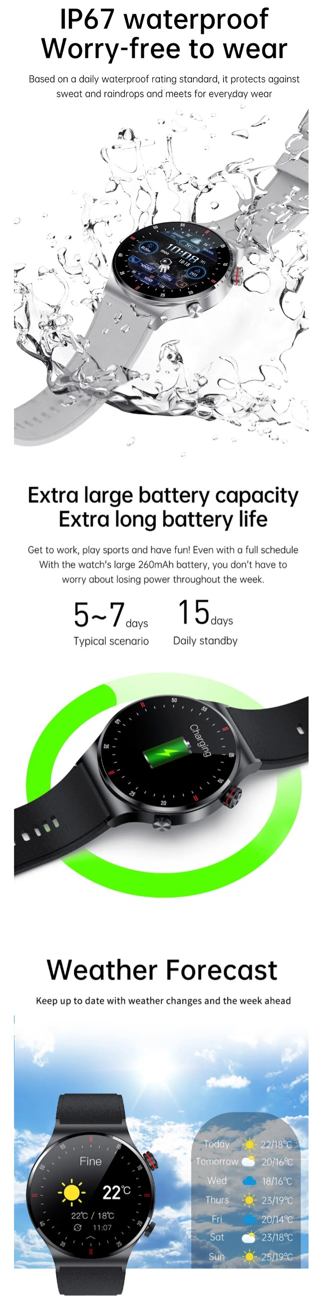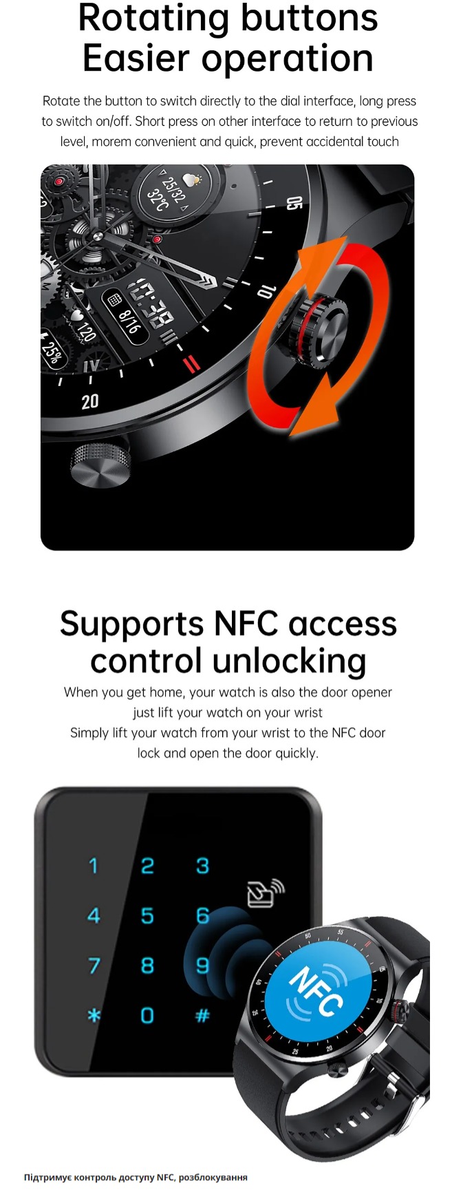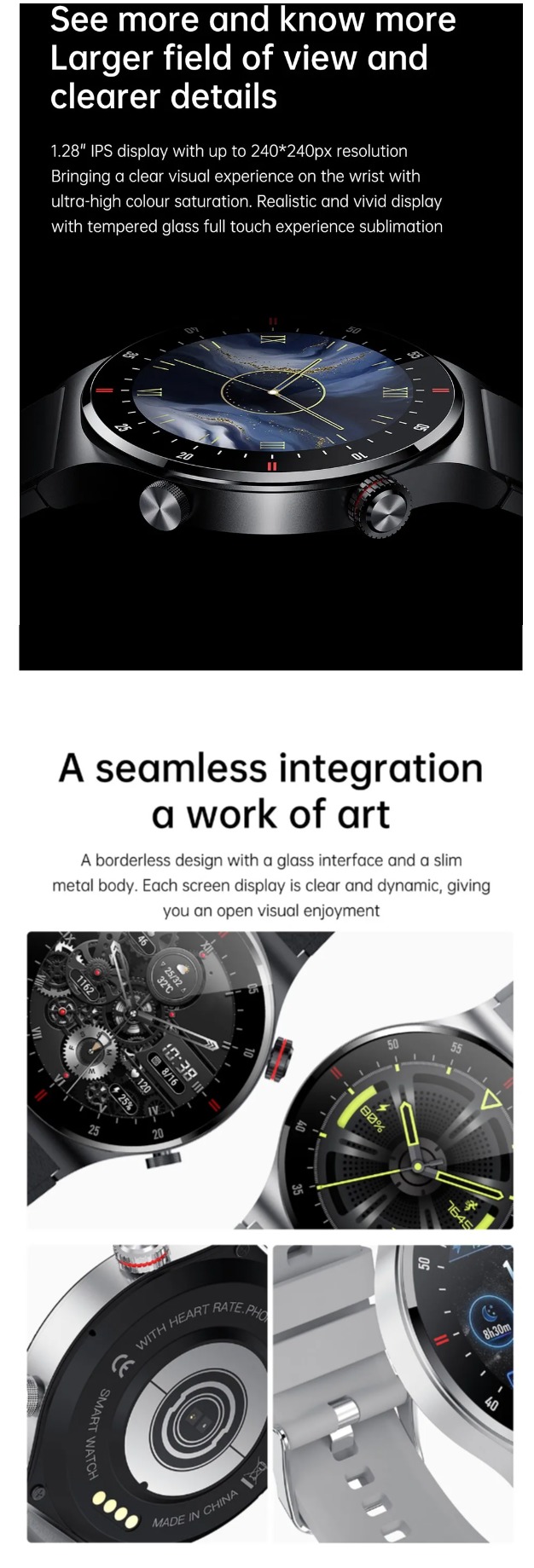 • IPS-матеріал екрану: насолоджуйтесь чітким і яскравим дисплеєм завдяки використанню IPS-матеріалу цього розумного годинника.