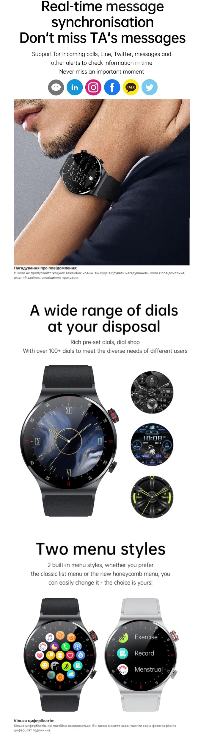 • Кілька циферблатів: налаштуйте циферблат розумного годинника за допомогою кількох циферблатів відповідно до свого стилю та настрою.