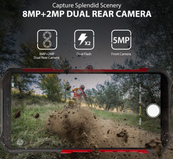 Несмотря на то, что дизайн защищенных телефонов часто остается на втором плане, разработчики не пожалели сил для Ulefone Armor X3. Он действительно привлекателен и имеет удобную эргономичную форму, а от воздействия пыли, влаги и воды защищен стандартом MIL-STD-810G. Металлический корпус защищает девайс от повреждений в результате ударов или падений. Большой экран окаймляют небольшие горизонтальные вставки – на верхней расположен модуль фронтальной камеры. Модель Ulefone Armor X3 получила отличные показатели дисплея: современную матрицу IPS с диагональю ровно 5,5 дюймов. Оптимальное соотношение сторон 2:1 гарантирует комфорт при использовании – этому также способствует разрешение 720 x 1440 и плотность точек 293 на дюйм. В целом, характеристики полностью оправдывают цену. На устройстве установлен стандартный 4-ядерный чип Mediatek MT6580, функционирующий в комплекте с 2 Гб оперативной памяти. Разработчики выделили 32 Гб внутреннего хранилища для личных данных пользователь, а за основу выбрали самую новую операционную систему Android 9.0 для быстрой работы аппарата в многозадачном режиме. Таким образом, купить Ulefone Armor X3 стоит для использования на каждый день. Емкость аккумулятора составляет 5000 мАч, благодаря чему гаджет продержится 3-4 дня без необходимости подзарядки. Идеальный вариант для туристов и путешественников. Камеры На Ulefone Armor X3 цена невысока, но оправдывается также хорошими камерами: основная получила разрешение 8 МП, а фронталка – 5 Мп, чего вполне хватит для общения по видео.