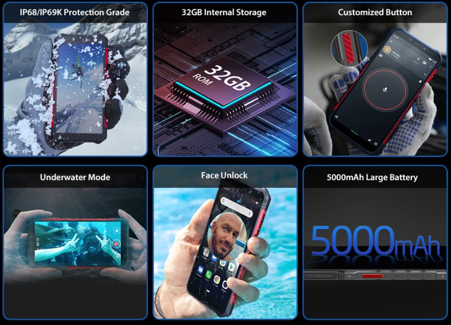 Ulefone   Armor X3 , 5,5' HD IPS экран, DUAL SIM, 4 ядерный процессор, оперативная память 2GB, ROM 32Gb, Android 9.0