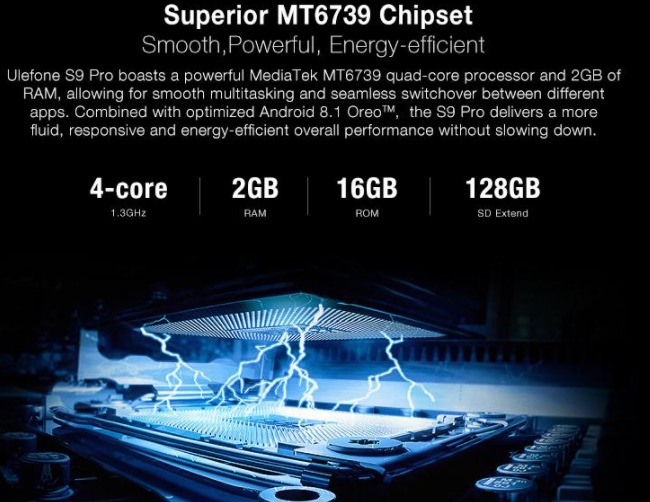 Ulefone S9 Pro, 5,5' HD IPS экран, DUAL SIM, 4 ядерный процессор, оперативная память 2GB, ROM 16Gb, Android 8.1
