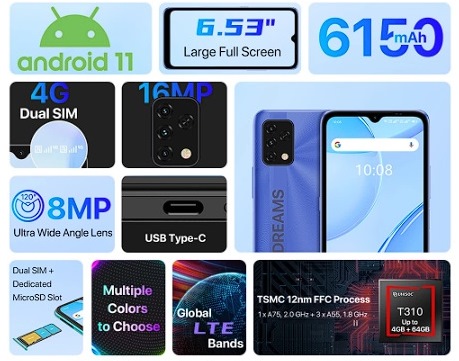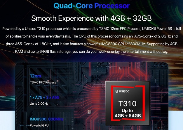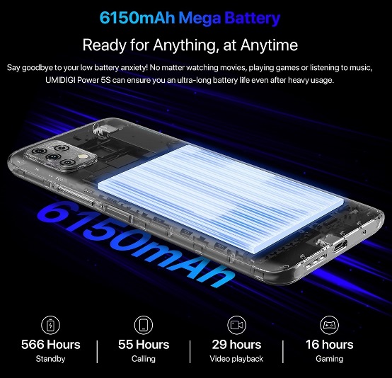 UMIDIGI Power 5S, 6,53' HD IPS екран, DUAL SIM, RAM 4GB, ROM 32 Gb, Android 11