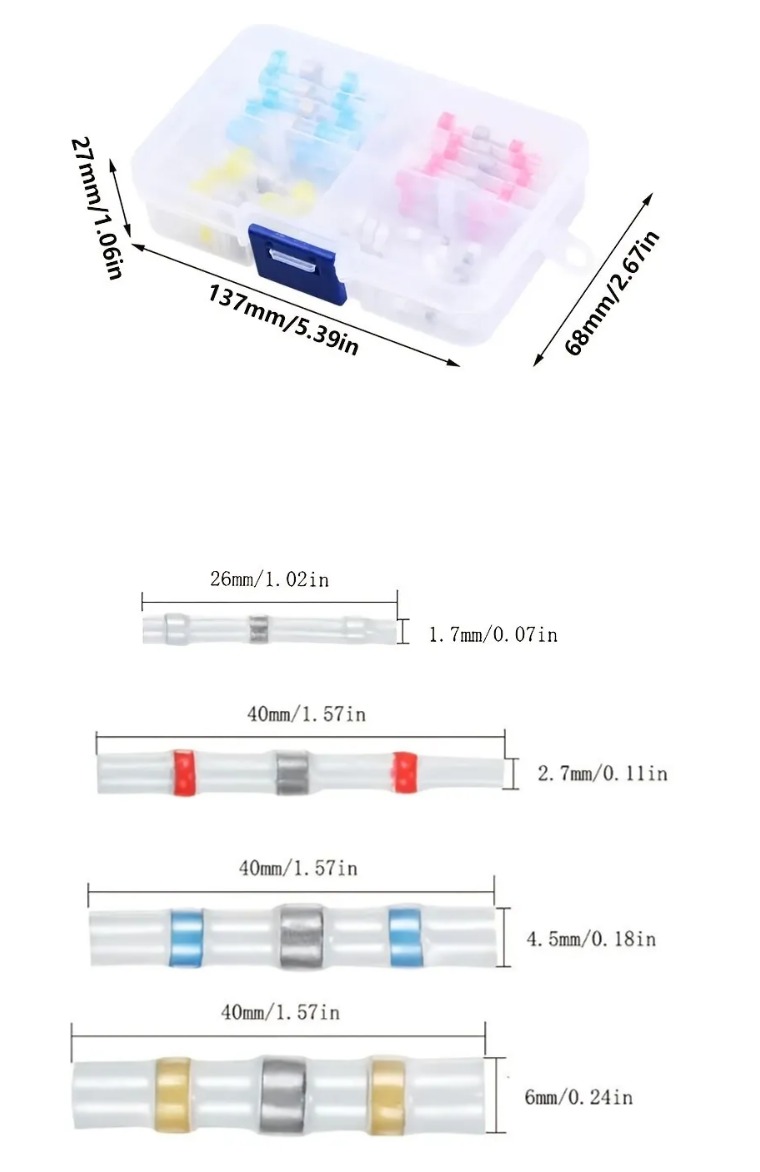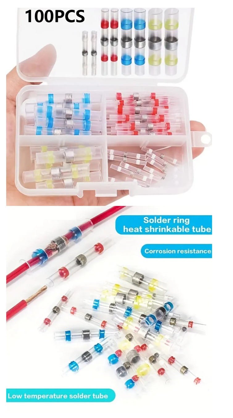 100 шт. Змішані термоусадочні клеми 4 розмірів, водонепроникні паяні гільзи, електричні ізольовані стиковіроз’єми з коробкою