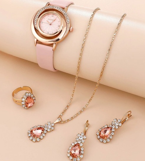 - 1 x Наручний годинник, 5 х Кольє, Браслет, Сережки,Кільце