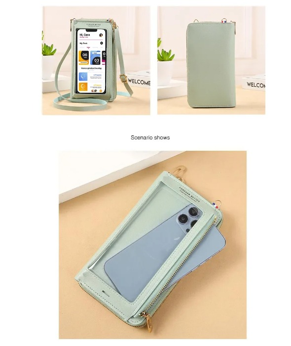 • Багатофункціональне використання: цей міні-гаманець можна використовувати не тільки для зберігання готівки та карток. Він також має слот для вашого телефону, що робить його ідеальним для вечірок або прогулянок.
