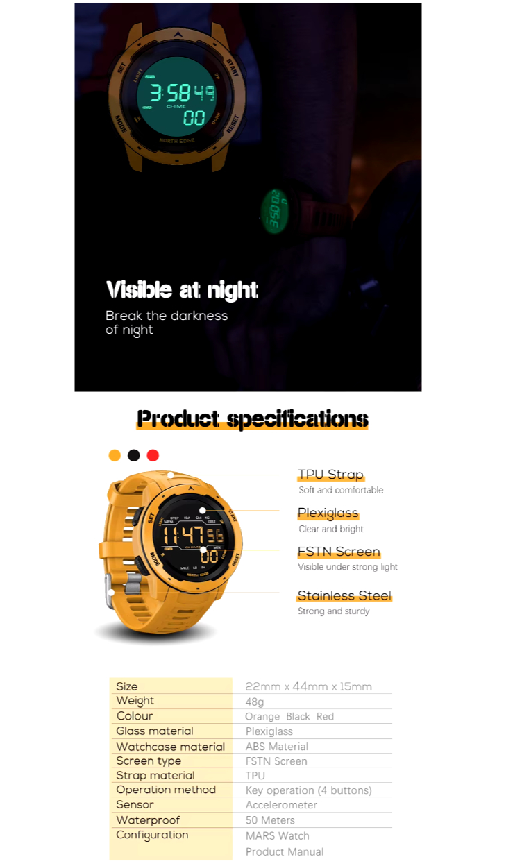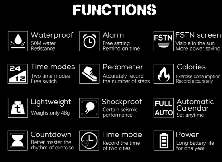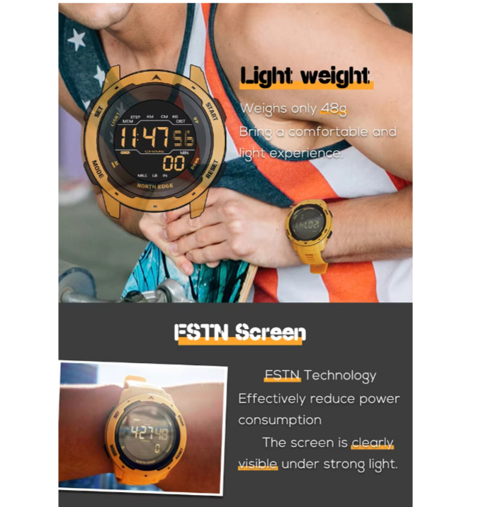 Розмір: 22*44*15 мм. Вага: 48 г Матеріал екрану: Оргскло Матеріал корпусу годинника: Матеріал ABS Тип екрана: FSTN. Матеріал ремінця: TPU